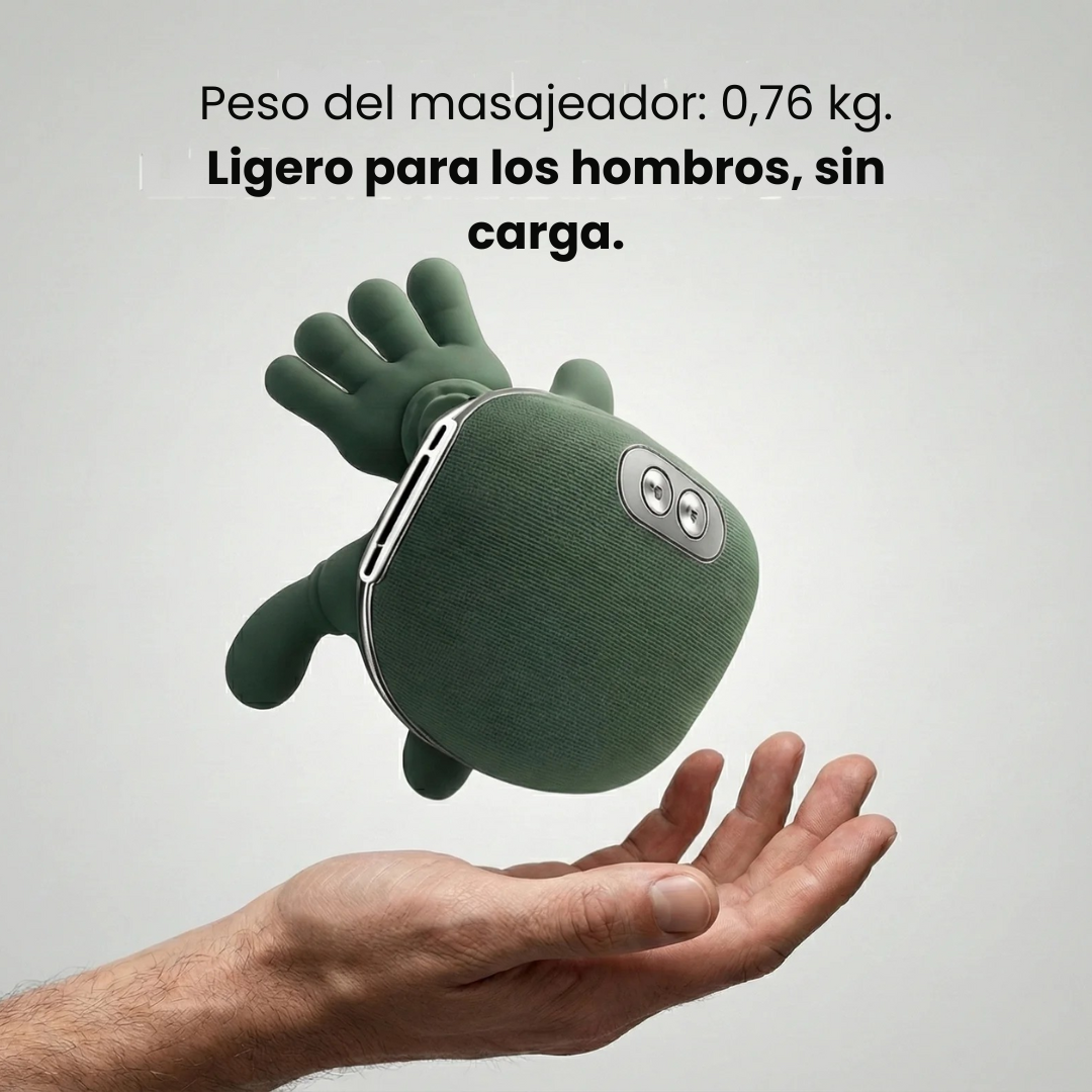 The massager simulates real hands with four fingers for the neck and a thumb for the trapezius muscles. It kneads and relieves tension while providing a relaxing massage. It can be used on other areas of the body such as thighs, calves, triceps, etc.